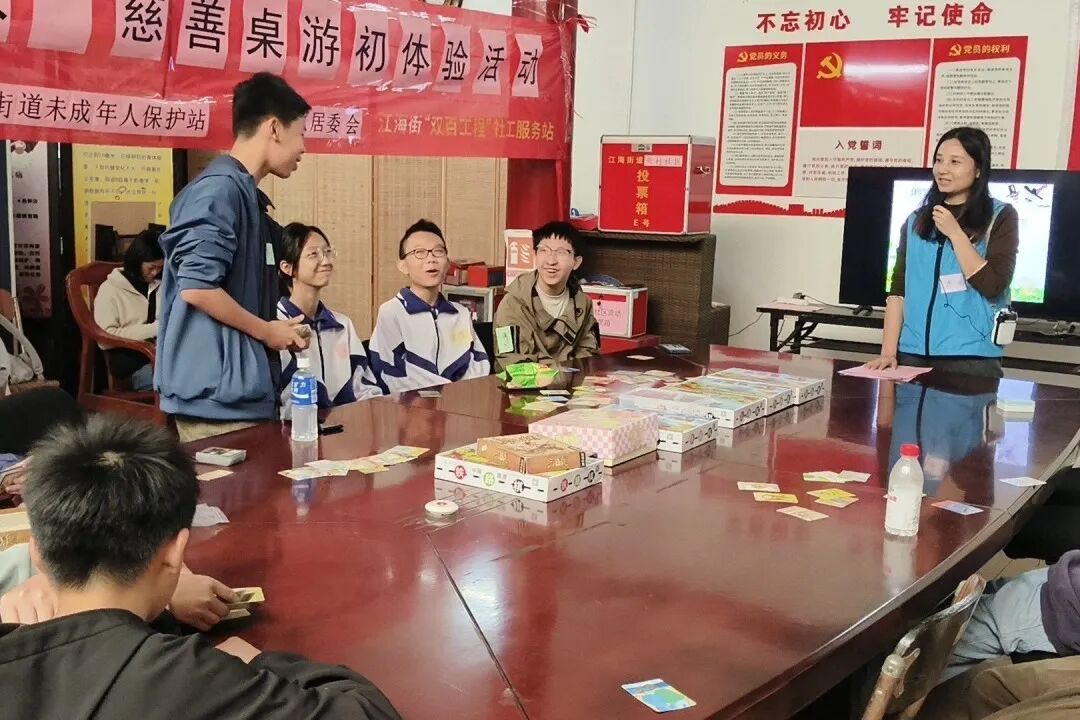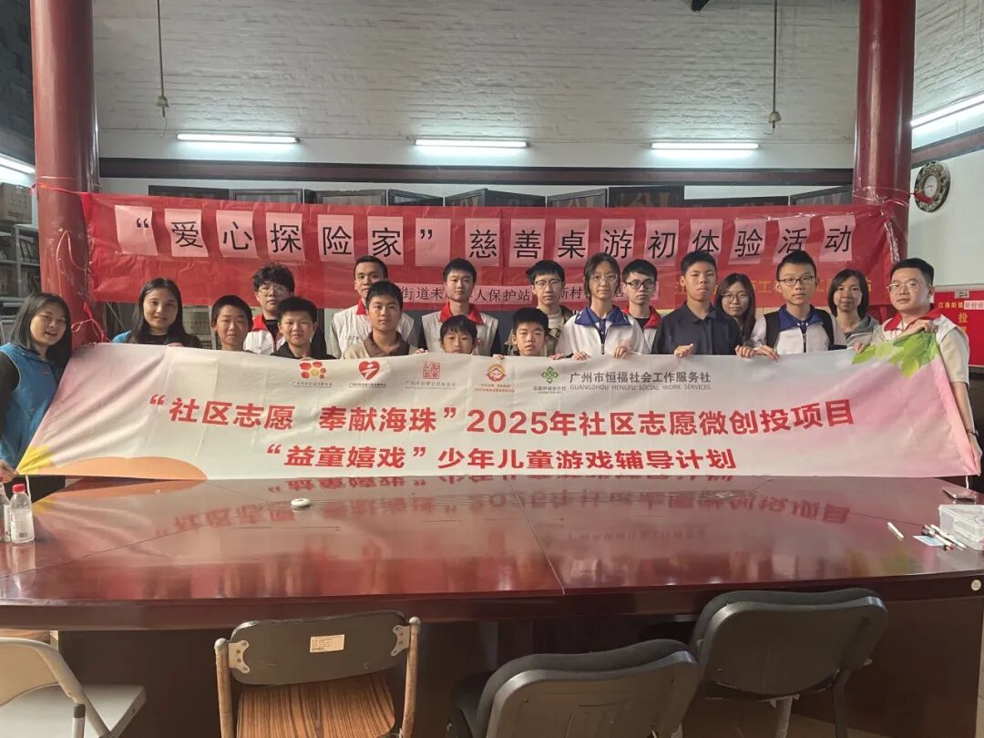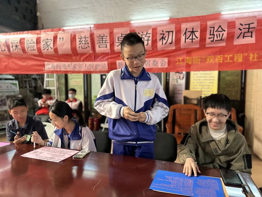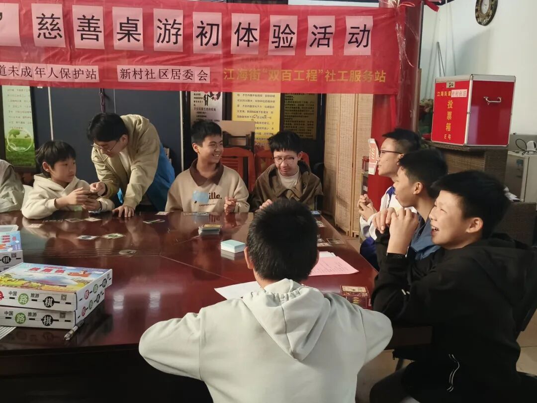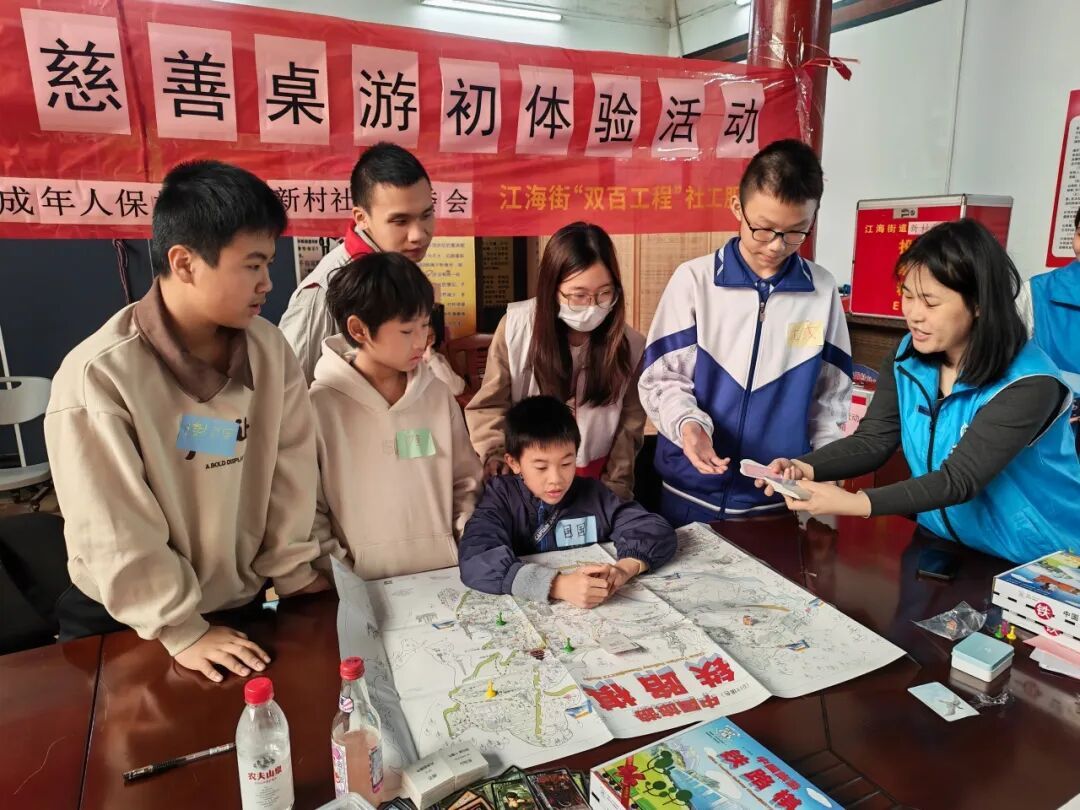 2026年1月17日上午,在广州市社会组织联合会、广州社联困境儿童关爱中心、广州市励善公益基金及广州市社会组织志愿服务总队的支持下,由广州市恒福社会工作服务社、江海街“双百工程”社工服务站、江海街未成年人保护站、江海街新村社区居委会联合举办的“爱心探险家——慈善桌游初体验活动”在新村社区顺利开展,共有16名儿童青少年参与其中。活动以桌游为载体,通过破冰互动、协作博弈、创意构想等多元环节,让参与者在轻松氛围中收获成长,为社区慈善路线打造注入青春活力。