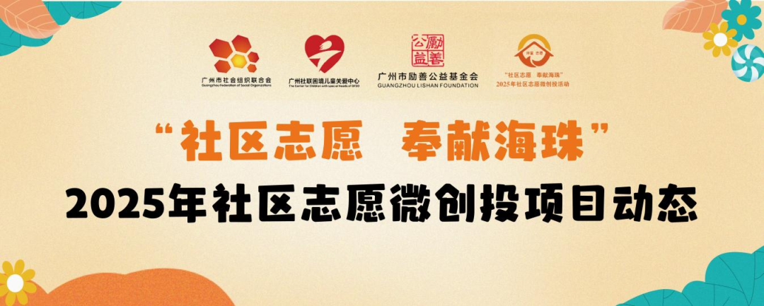 由广州市社会组织联合会、广州社联困境儿童关爱中心、广州市励善公益基金会和广州市社会组织志愿服务总队联合主办的“社区志愿 奉献海珠”2025年社区志愿微创投活动,经宣传启动、项目征集、评审及公示等工作,最终确定6个志愿服务项目为“社区志愿 奉献海珠”2025年社区志愿微创投活动资助项目。为继续打造“社区志愿 奉献海珠”2025年社区志愿微创投活动品牌,宣传新时代社区志愿服务项目,主办单位定期收集并发布各微创投项目服务实录、活动招募信息等项目动态资讯,欢迎持续关注!