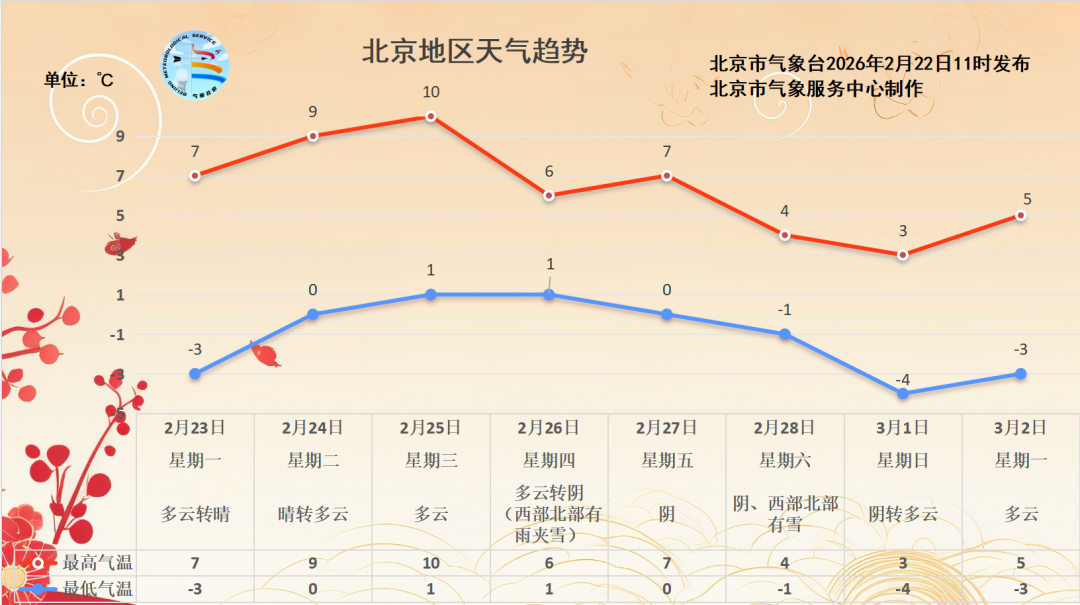明天是春节长假的最后一天,天气以晴到多云为主,白天最高气温在7℃上下,风力不大,有利于交通出行和户外活动。